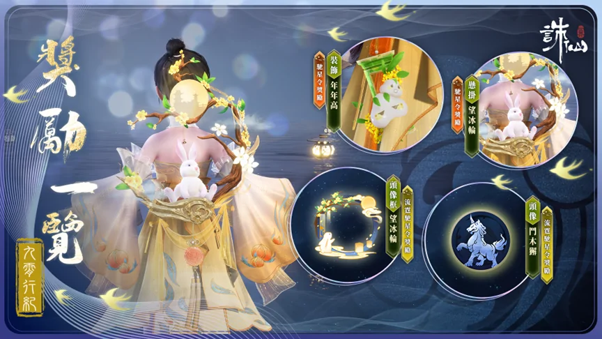 仙友購買並啟動【馳星令】,並達到對應九霄行紀等級。還可獲得雲賞點、彩玉、織夢晶石、聚元育靈丹、消耗品自選壺、掛件【裝飾·年年高】;掛件【懸掛·望冰輪】;紫虛凝精匣。