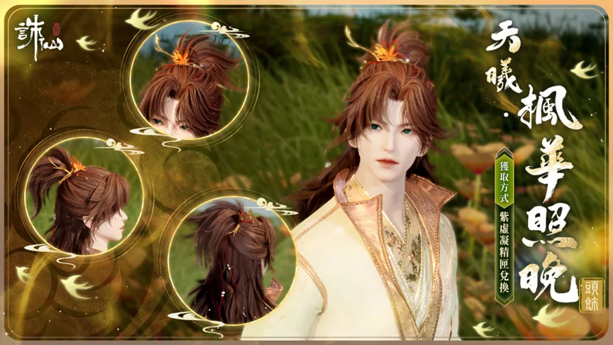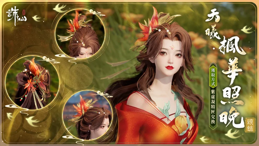 【紫虛凝精】可用於在九霄行紀商店兌換稀有頭飾【天曦·楓華照晚】。
