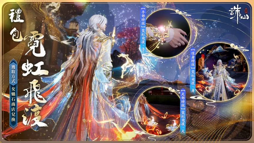 此外,女媧石兌換商店同步上架【霓虹飛渡】禮包,售價1顆女媧石,禮包內含環身特效【霓虹飛渡·身】、手部特效【霓虹飛渡·手】及足部特效【霓虹飛渡·足】。