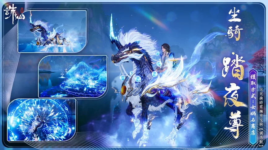 女媧石兌換商店上架飛行坐騎【踏夜尊】,售價1顆女媧石。需要擁有【獨角獸】坐騎才可兌換。