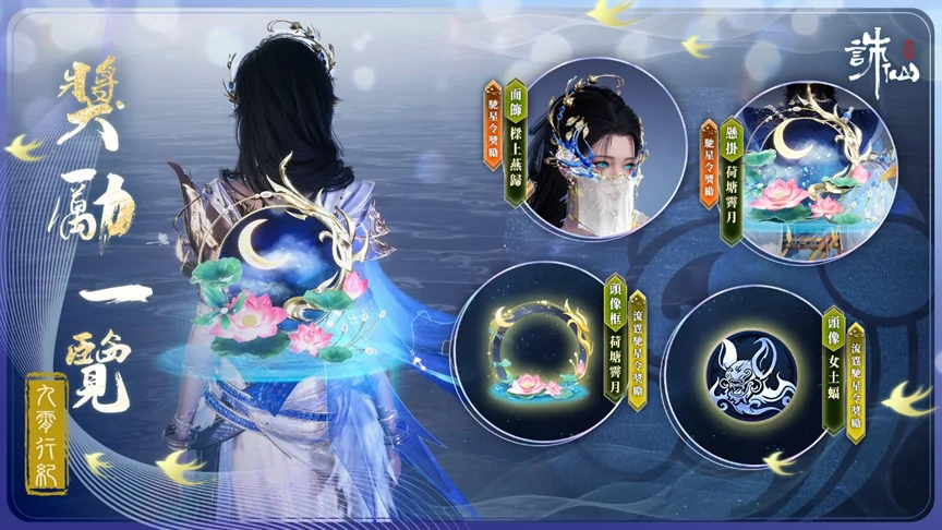 (1)仙友購買並啟動【馳星令】,並達到對應九霄行紀等級。還可獲得雲賞點、彩玉、織夢晶石、聚元育靈丹、消耗品自選葫蘆、掛件【面飾·樑上燕歸】、掛件【懸掛·荷塘霽月】、紫虛凝精匣。