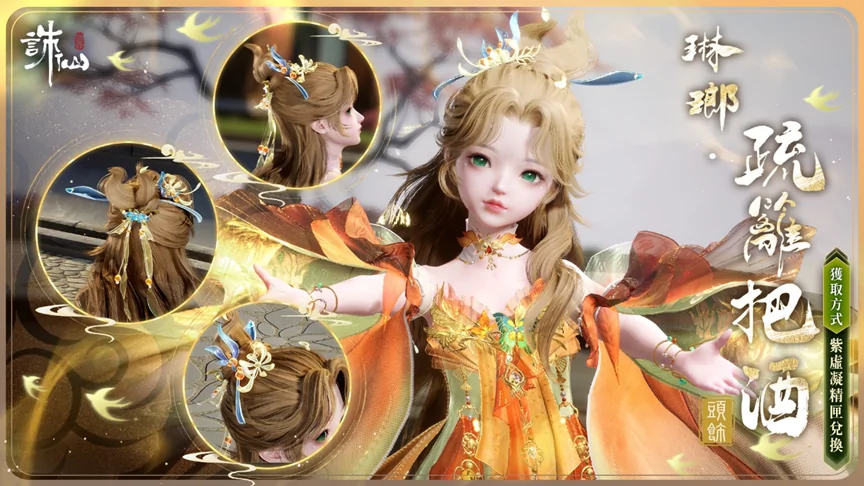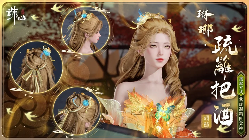 九霄商店新增【琳瑯疏籬把酒】髮型禮包,可使用100紫虛凝精兌換。