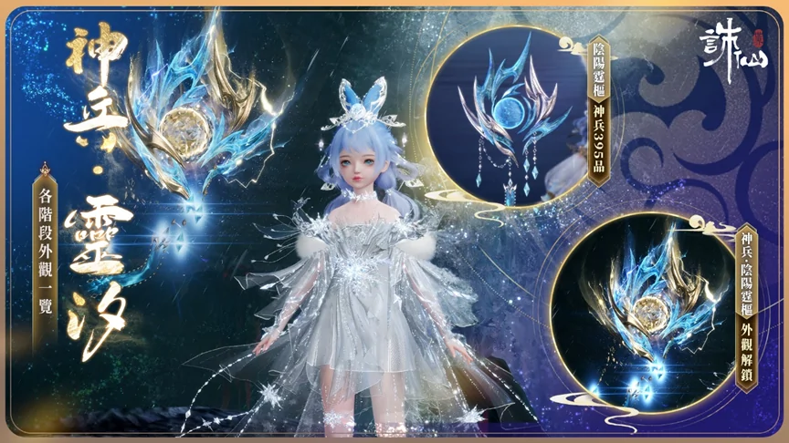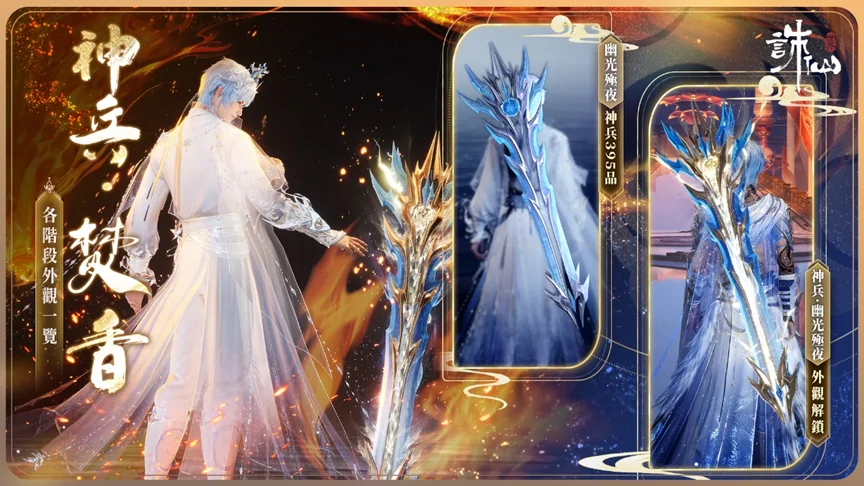 仙友可透過不斷提升武器品級(最高提升至415品級),煉就絕世神兵!更有武器外觀變化,隨神兵成長逐漸顯現其中霹靂鋒芒!