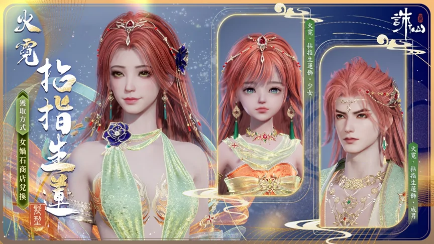 另外女媧石兌換店同步上架髮型【火霓·拈指生蓮飾】,售價1顆女媧石。